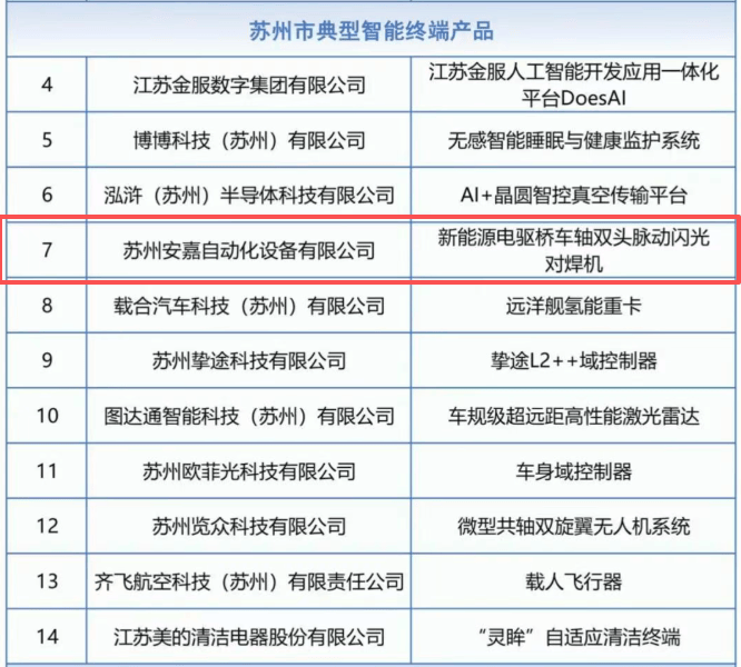 做为新能源配备制制范畴的环节供应商。此次获的闪光对焊机采用了AI智能调理、自顺应节制及高精度监测手艺,查看更多此次入选,显著提拔产质量量和出产节奏,建立智能化财产生态。为姑苏新能源及高端配备制制业的立异成长注入强劲动能。