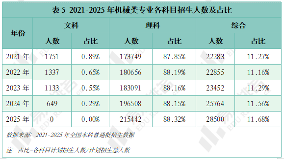 近五年机械类专业招收文科\汗青考生的打算数逐年递减,